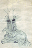Many of these ink and pencil drawings date to the late 1960s and early 1970s. There are some more recent works, and a couple small studies that clearly influenced later paintings. The linoleum woodcut of the woman and the tree is one of my favorites - we may make t-shirts from it someday.pencil drawing |